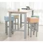 Die Tischoberflächen bestehen jeweils aus robusten, melaminharzbeschichteten, kratzfesten Spanplatten. Stellen Sie mit unseren Hochtischen, Hochtisch-Wandelementen, Ess- und Beistelltischen, Hochbänken und runden sowie quadratischen Hochstühlen (Barhockern), kleinen quadratischen und runden Hockern, Lounge-Sofas, Lounge-Sofa-Kissen und Wandpolsterelementen komfortable Bereiche fürs gemeinsame Essen und Energie-Auftanken zusammen – ganz nach Ihrem Gusto.