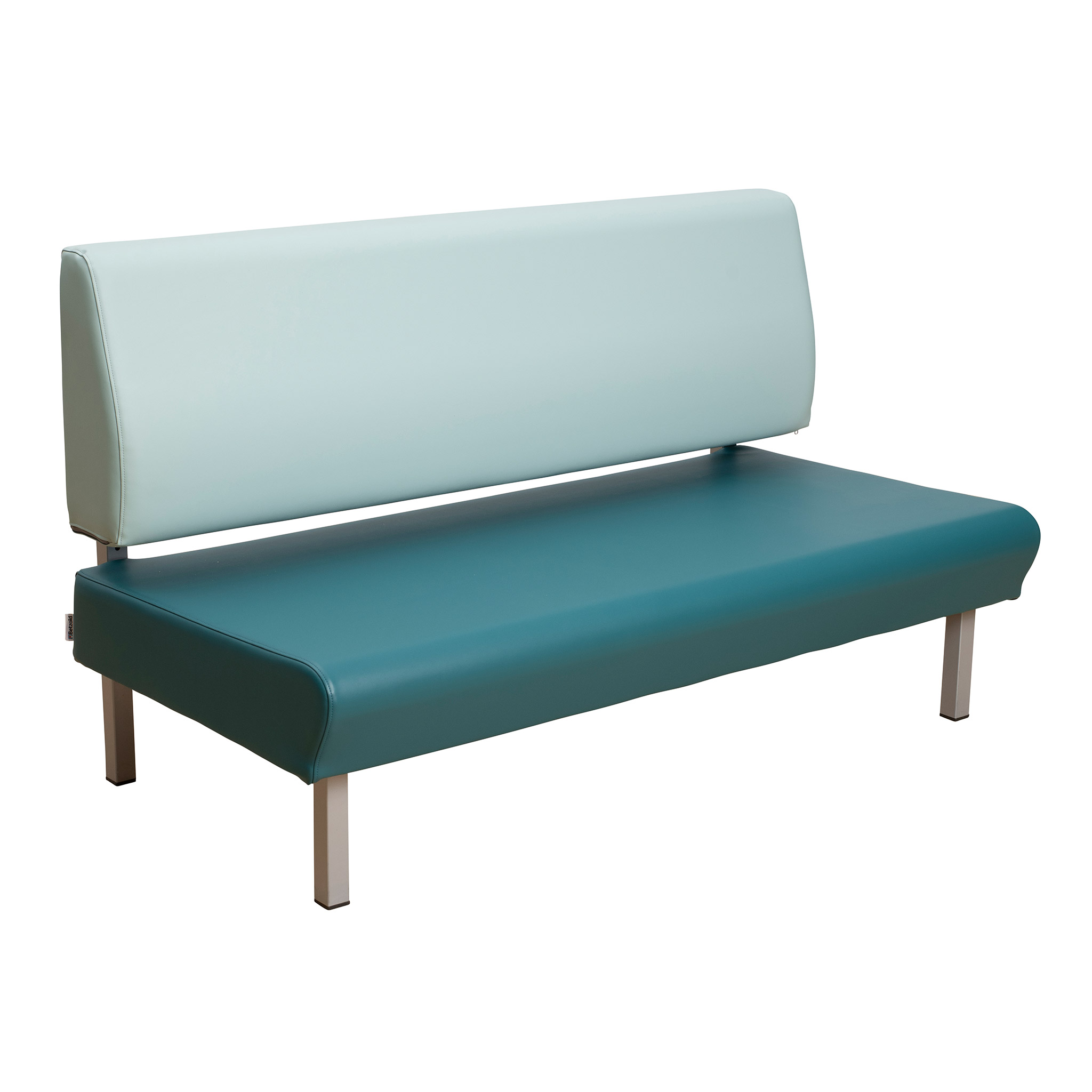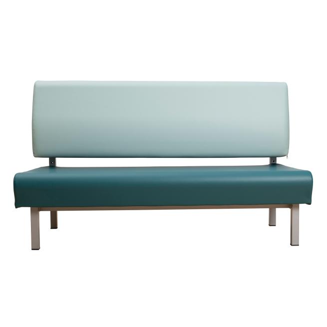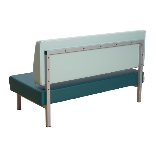 Bezogen sind die Sitzmöbel mit Kunstleder. Es ist besonders hygienisch , da Sie es einfach feucht abwischen. Zudem ist es schwer entflammbar nach DIN EN 1021.