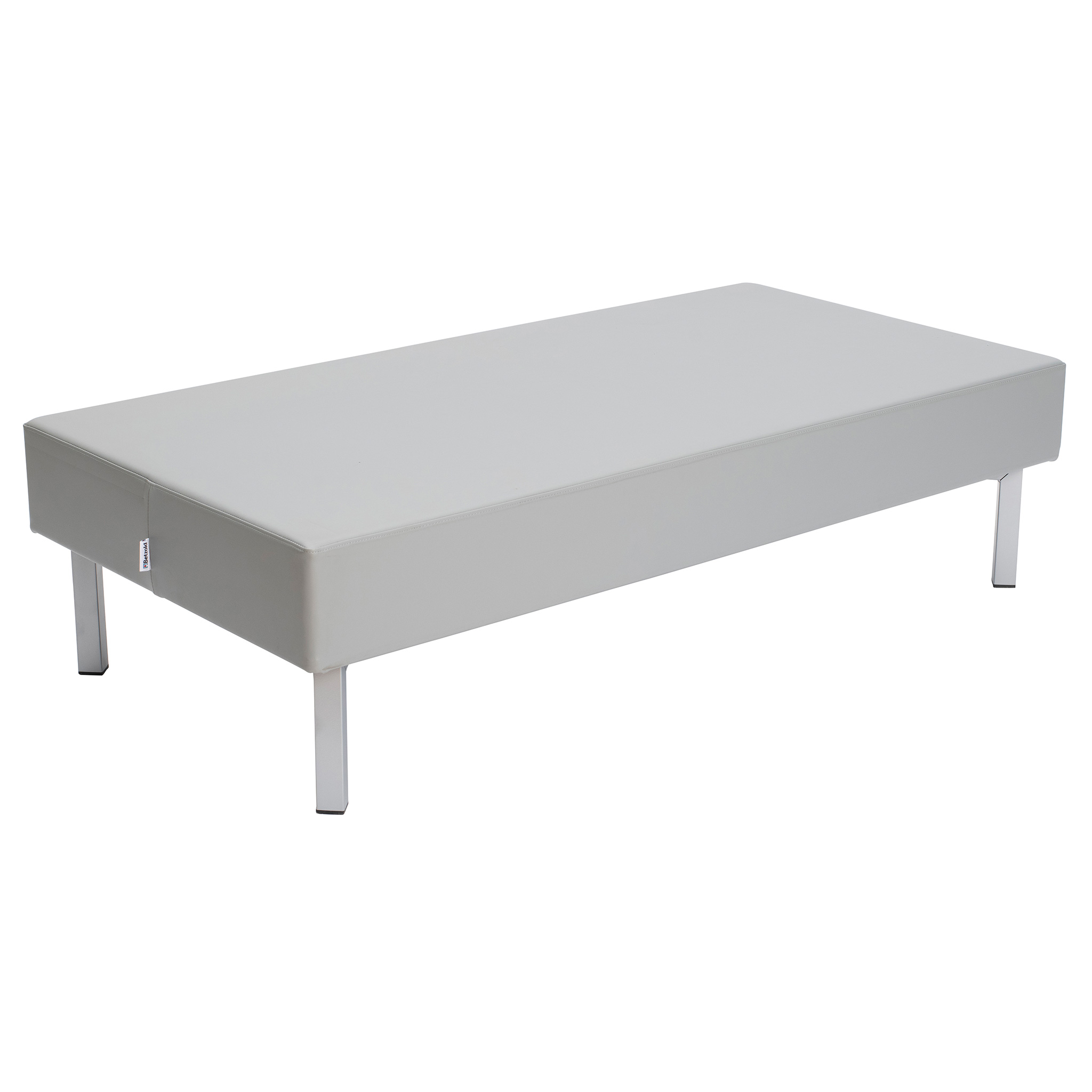 Bezogen sind die Sitzmöbel mit Kunstleder. Es ist besonders hygienisch, da Sie es einfach feucht abwischen. Zudem ist es schwer entflammbar nach DIN EN 1021.