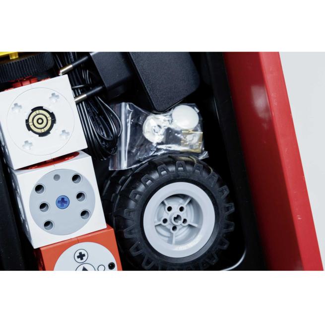 Das Set und die zugehörigen Unterrichtsmaterialien sind auf die Rahmenlehrpläne und unterschiedliche Lernniveaus abgestimmt und für den Einsatz in der Schule (ab Sekundarstufe I) sowie anderen Bildungseinrichtungen entwickelt. Der eXperiBot ist in kompakter und stabiler Modul-Bauweise konstruiert und lässt sich mit wenigen Handgriffen montieren. Er ist im Handumdrehen startklar und bereit für Experimente – ob im MINT-Unterricht, fächerübergreifend oder im Rahmen einzelner Schulprojekte!