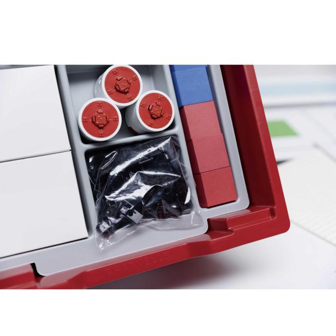 Produktfarbe: mehrfarbig, Rot (Aufbewahrungswanne), transparent (Klemmdeckel), Schwarz (Facheinsatz)