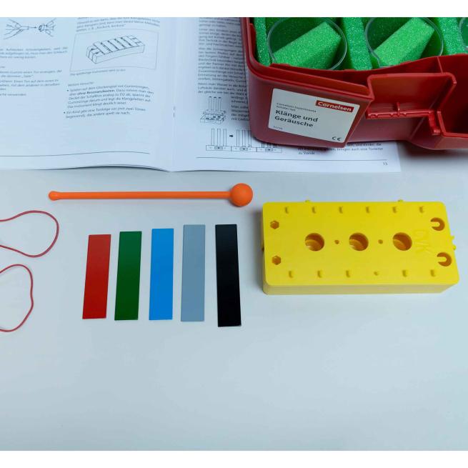 Ob in Musik, Biologie oder Physik – bis zu 15 Gruppen der Klassen 2 bis 4 experimentieren fächerübergreifend mit dem Inhalt der Box und machen sich in spannenden Versuchen vertraut mit den Gesetzmäßigkeiten der Akustik. Bestens geeignet für das Lernen an Stationen in Partnerarbeit.