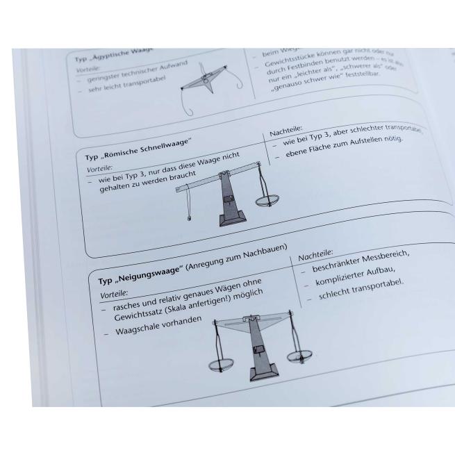 13 Versuche und Material für 15 Lerngruppen. Anschaulich lernen Ihre SuS mit Gewichten und dem Maßsystem zu rechnen. Gleichzeitig machen sie sich vertraut mit Wippe, Balkenwaage, Federwaage, Schnellwaage und Rechenwaage (Hebel). Zudem lernen sie historische und physikalisch-technische Aspekte der Waage und des Wiegens kennen.