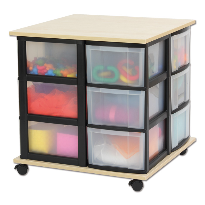 Die geräumigen Schubladen bieten einen Aufbewahrungsort für verschiedene Materialien und Gruppenarbeiten. 4 Rollen (2 davon feststellbar) sorgen dafür, dass das Regal fahrbar ist. Mit Schubladen aus hochwertigem Kunststoff, leicht zu reinigen.