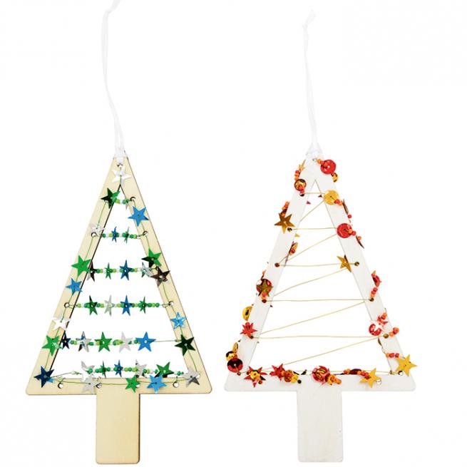 Oh Tannenbaum. Mit Perlen, Federn oder allerlei anderem Bastelmaterial verwandeln Sie und Ihre Kinder die 6 Bäume in wunderschöne Schmuckwerke. Bastelmaterial einfach auf die beiliegenden Schnüre ziehen und durch die Ösen der Bäume fädeln.