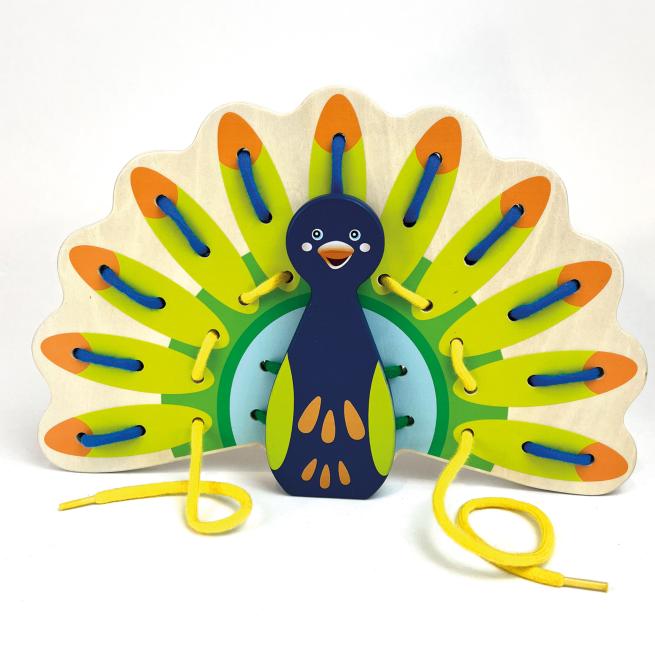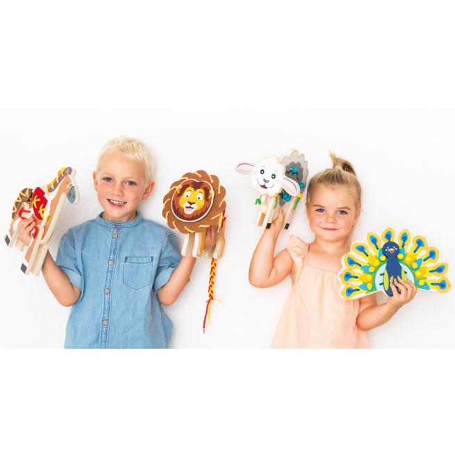 19 Elemente aus Holz für 4 Tiere14 Schnüre in 6 Farben