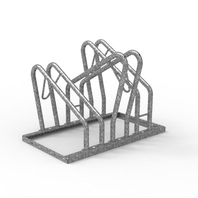 Die modularen Reihenständer „Riga“ bieten sichere und übersichtlich geordnete Abstellplätze für drei, fünf, sechs, acht oder zehn Fahrräder je nach Ausführung. In dieser Anordnung bestehen zwischen den Eintiefungen der Ständer ca. 17,5 cm Abstand, damit genug Platz zwischen den Fahrrädern gegeben ist. Dadurch, dass die Fahrräder in der wechselnden Ausführung immer gegenüber stehend geparkt werden, können Sie mehr Fahrräder auf der gleichen Breite unterbringen als alle nebeneinander stehend.
