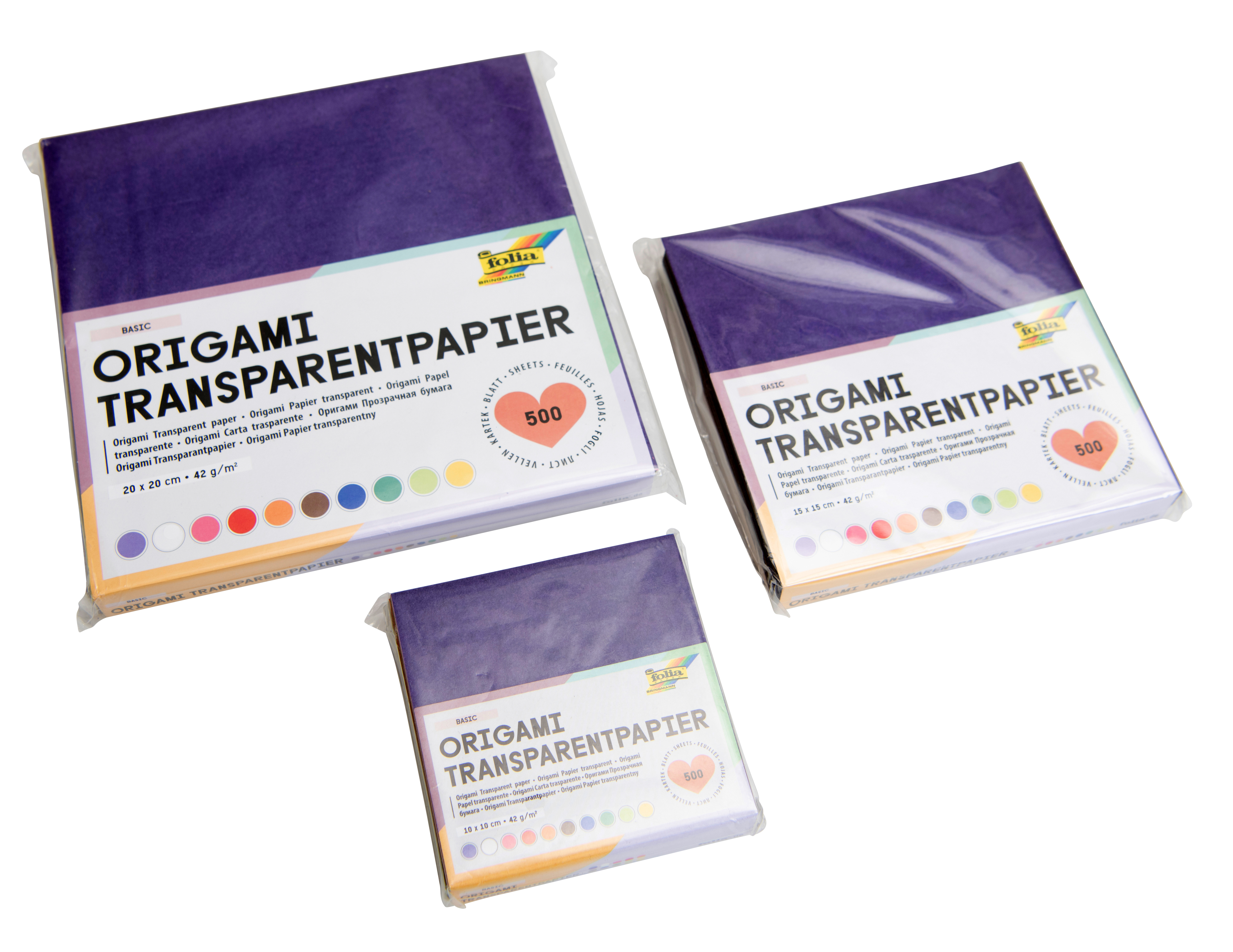 je 500 Faltblätter aus Transparentpapier, 40 g/m²in 10 Farben sortiert