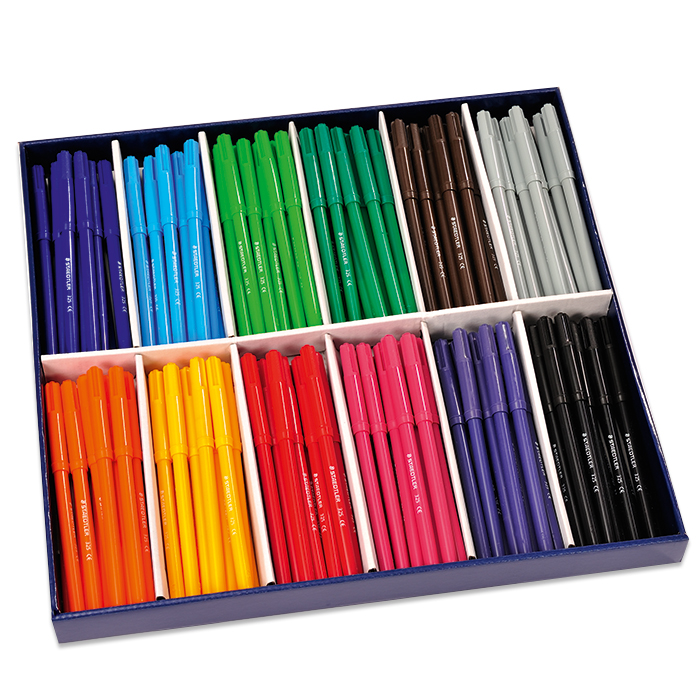 144 Stifte in 12 Farben im Sortierkarton. Die Spitze (Ø 0,5 mm) ist eindrücksicher.