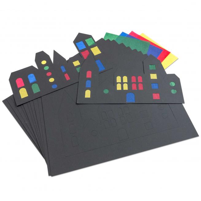 Schnelle Fenster-Deko mit tollen Farb-Effekten. Ohne große Vorbereitung verschönern Sie mit Ihren Kindern bzw. Schülerinnen und Schülern die Fenster in Ihrer Einrichtung. Die 12 ausgestanzten, schwarzen Stadtbilder in zwei unterschiedlichen Motiven lassen Sie entweder so oder schneiden sie nach Bedarf zu. Die Motive sind jeweils 40 cm lang. Auch Schränke mit Glaseinsätzen bekommen damit eine Hingucker-Optik.