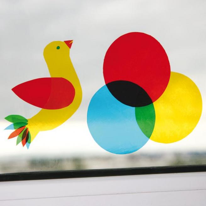 Die farbintensiven Folien werden wie Papier geschnitten. Halten auf allen glatten Oberflächen wie Fensterscheiben, Acrylglas oder hochglanzlackierten Oberflächen ohne Kleben. Farbig sortiert. Mehrfach zu verwenden.