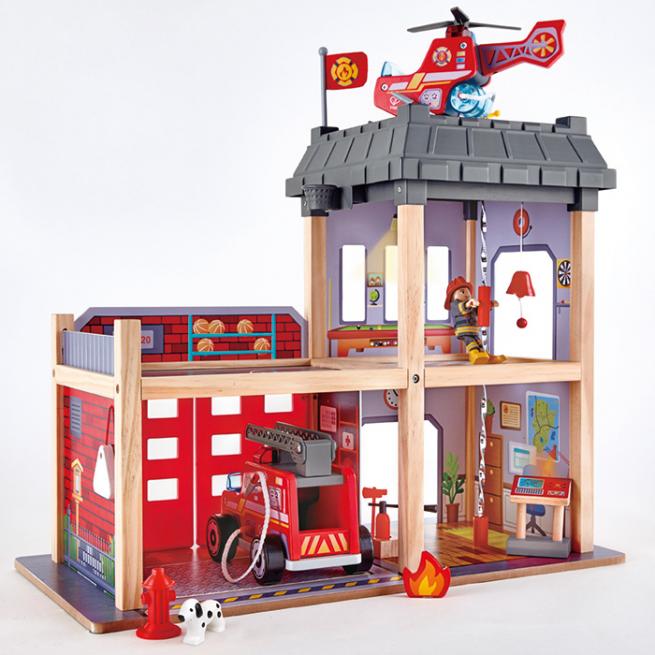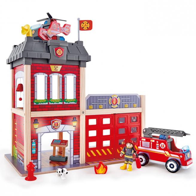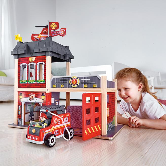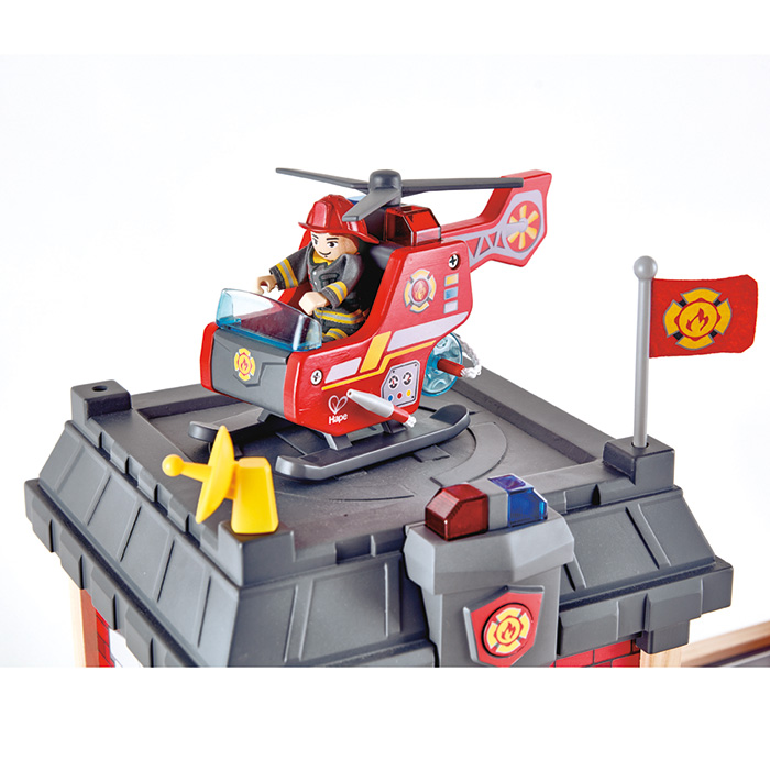 Wenn ich groß bin, werde ich Feuerwehrmann! Dieser Beruf ist für Kinder einfach faszinierend: Brände löschen, Menschen und Tiere retten, große Einsätze – oft sogar mit dem Helikopter, immer auf Abruf bereit sein, das stellen sich die Kinder als riesengroßes Abenteuer vor. Wie es sich anfühlen könnte, auch einmal Feuerwehrmann zu sein, erleben Kinder im Rollenspiel mit der großen Feuerwache und dem umfangreichen Zubehör. Signalleuchte und Alarmton künden schon den nächsten Einsatz an.