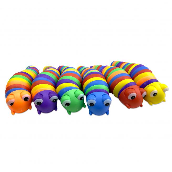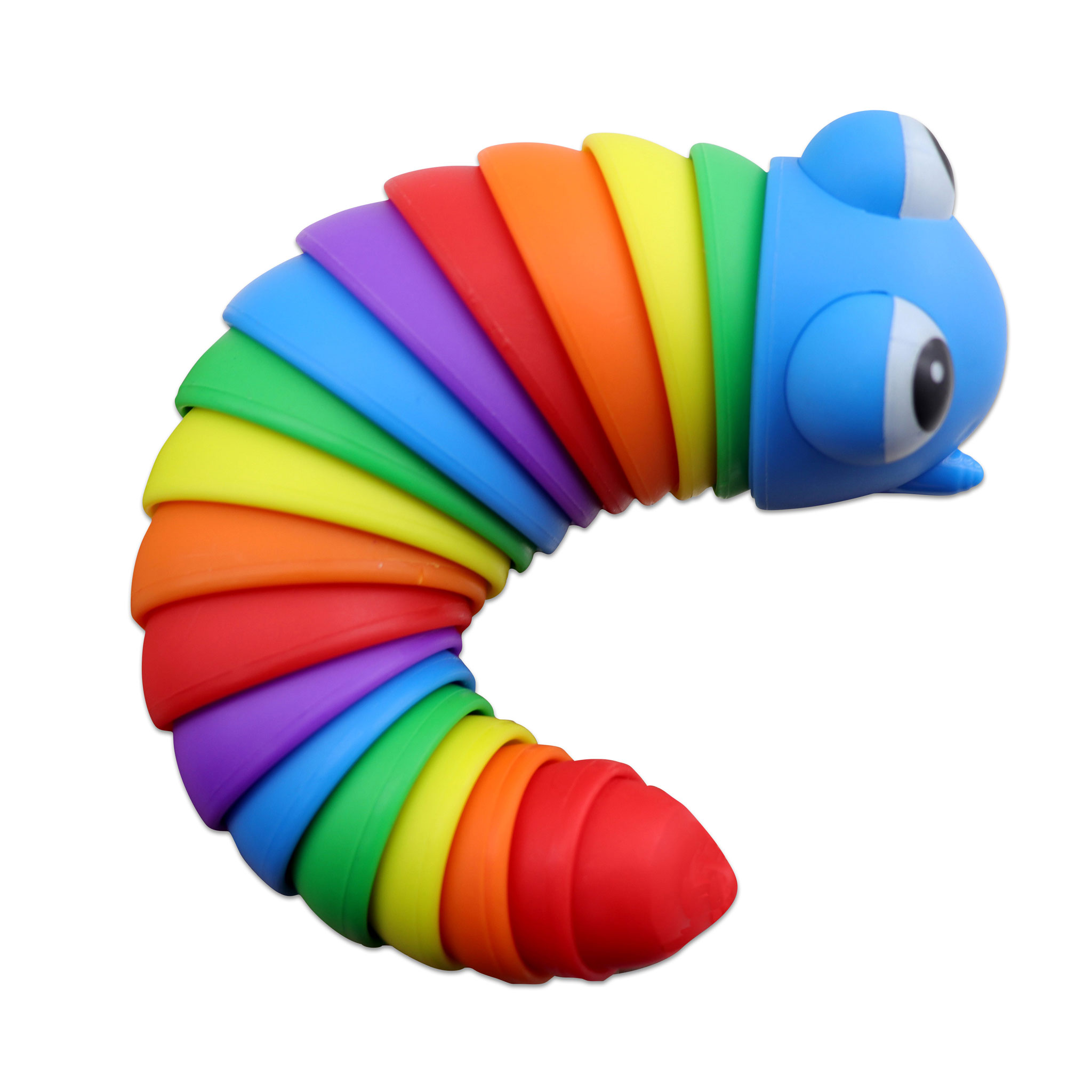 Sensorische Spielzeuge zum Entspannen. Schnecke oder Raupe helfen nicht nur Kindern beim Entspannen, sondern auch Erwachsenen. Der wendige Körper mit seinen farbenfrohen, runden Gelenken ist dank bruchsicherem Kunststoff besonders langlebig. Herausgedrehte Gelenke stecken Sie einfach im Handumdrehen wieder zusammen.
