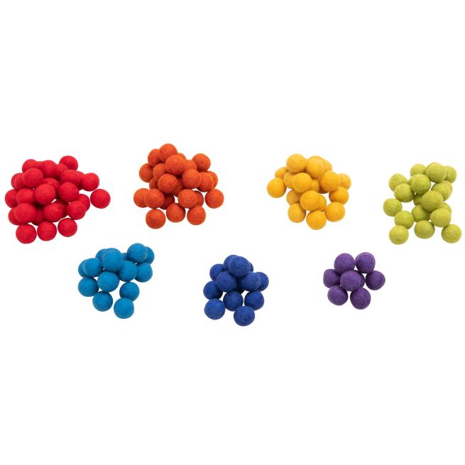Die Filzkugeln in attraktiven Regenbogenfarben sind zum Beispiel zum Zählen und Sortieren oder Legen bunter Formen ideal.