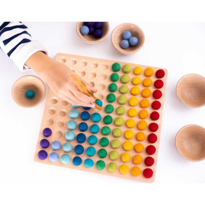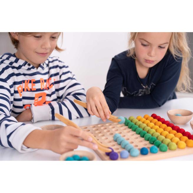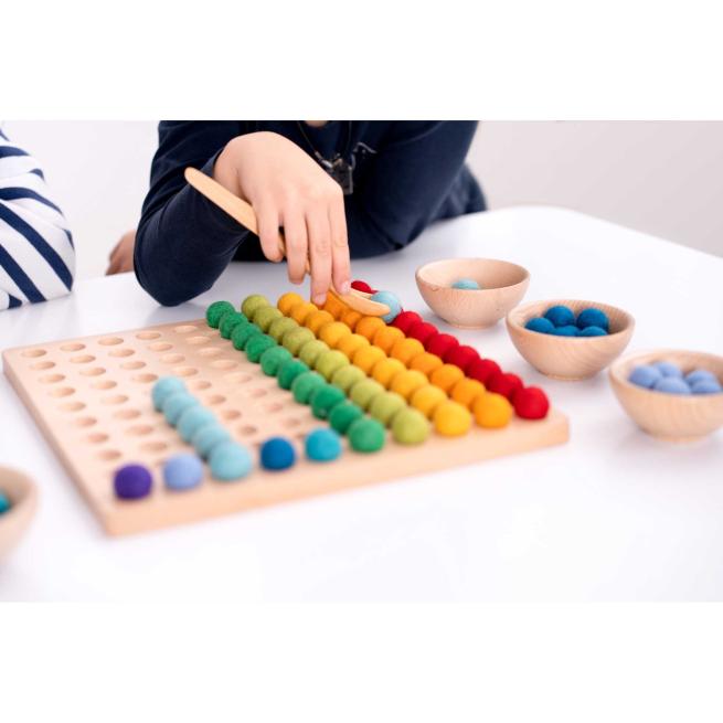 Die geschmeidigen und lautlosen Filzperlen aus 100% Schafwolle sind ideal für Zähl- und Sortierspiele. Mit einem Durchmesser von 2 cm sind sie ideal zum Befüllen des Zählbretts.