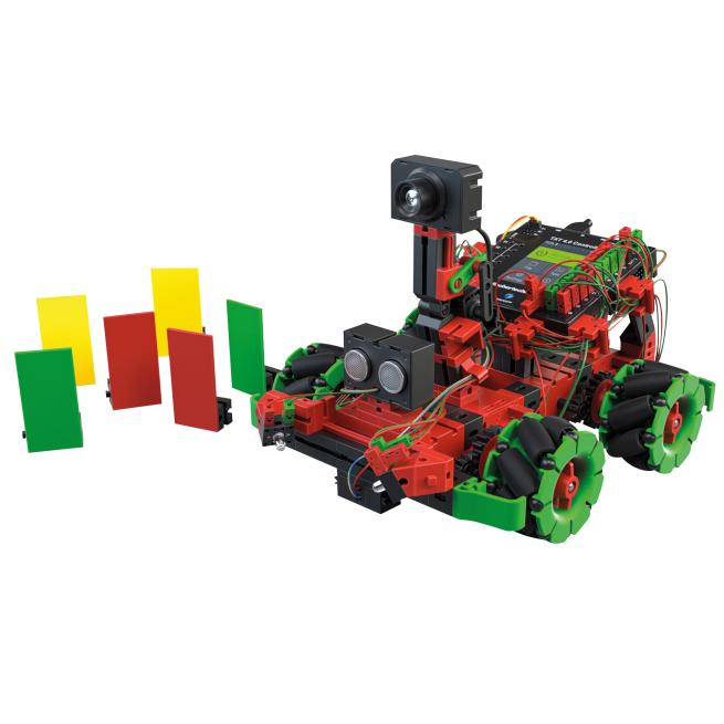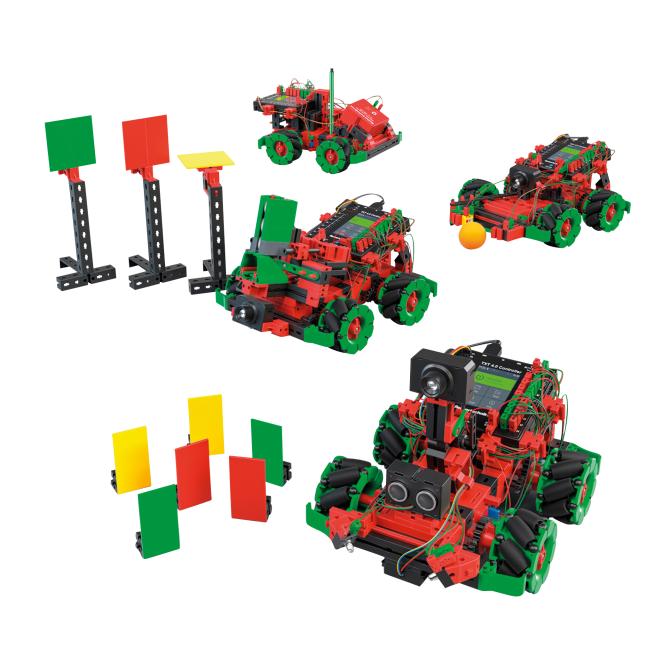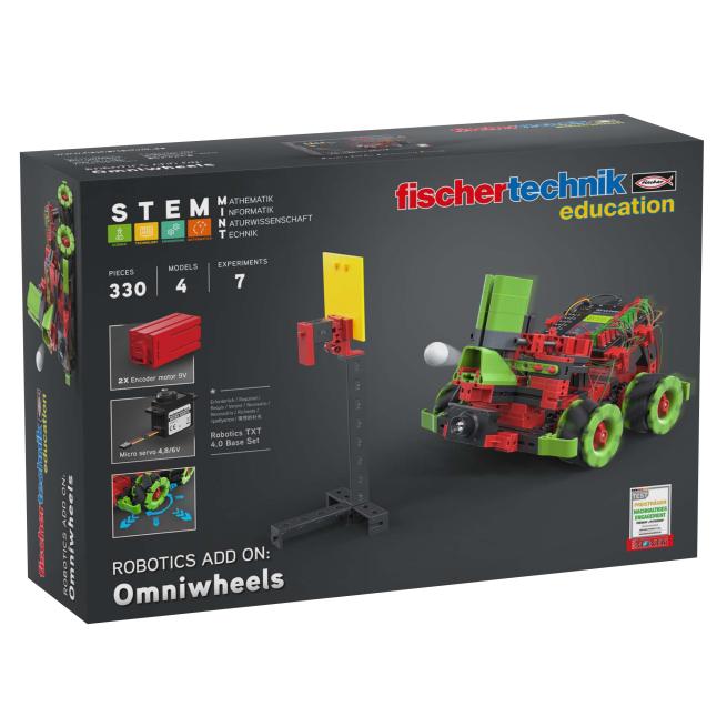Das fischertechnik® Robotics Add On: Omniwheels enthält 331 zusätzliche Bauteile für 4 neue und mobile Robotik-Modelle. Mithilfe der beiliegenden Bauanleitung konstruieren Ihre SuS u. a. einen Mal- oder einen Fußballroboter. Besonderes Bauteil sind in allen Fällen die 4 Omniwheels, die über insgesamt 4 Encodermotoren (2 davon im Add-On enthalten, die 2 anderen aus dem Base-Set) angetrieben werden. Es entsteht ein Allradantrieb, der Bewegungen der Roboter in alle Richtungen ermöglicht!