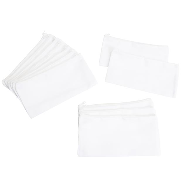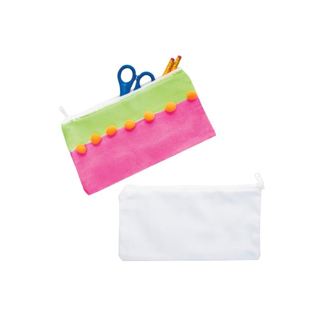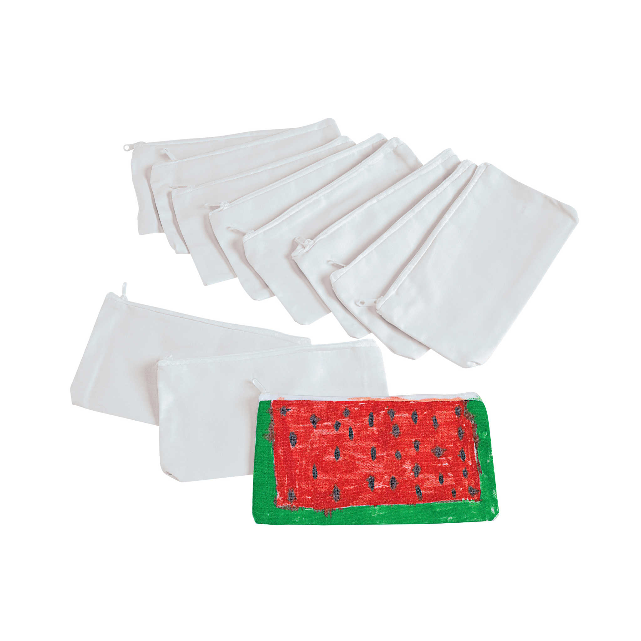 Kreatives Mäppchen-Projekt für Kita, Schule oder Geburtstag. 12 flache Blanko-Federmäppchen warten auf Farbe, Stempel, Glitzer und Stoffmarker. Kinder entwerfen ihr eigenes Design, präsentieren ihr Ergebnis stolz und nutzen das Mäppchen täglich für Stifte, Kleber und Schere.