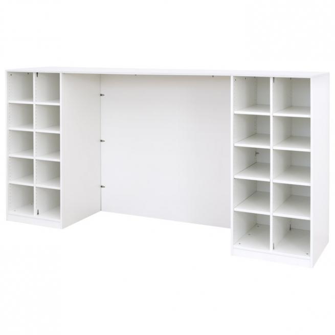 Praktisch für multifunktionale Räume. Verstauen Sie in diesem Schrank bis zu 20 Liegen samt Zubehör. In der Mitte haben die Liegen Platz. Das passende Bettzeug, Kuscheltiere und Decken verstauen Sie in den Regalfächern. So ist alles aufgeräumt und Sie nutzen den freien Platz dann einfach nach Belieben. Dank Sichtrückwand können Sie den Raum auch entsprechend in Bereiche teilen. Gefertigt aus 19 mm starken Spanplatten. Wählen Sie aus 11 Dekoren Ihre Lieblingsvariante.