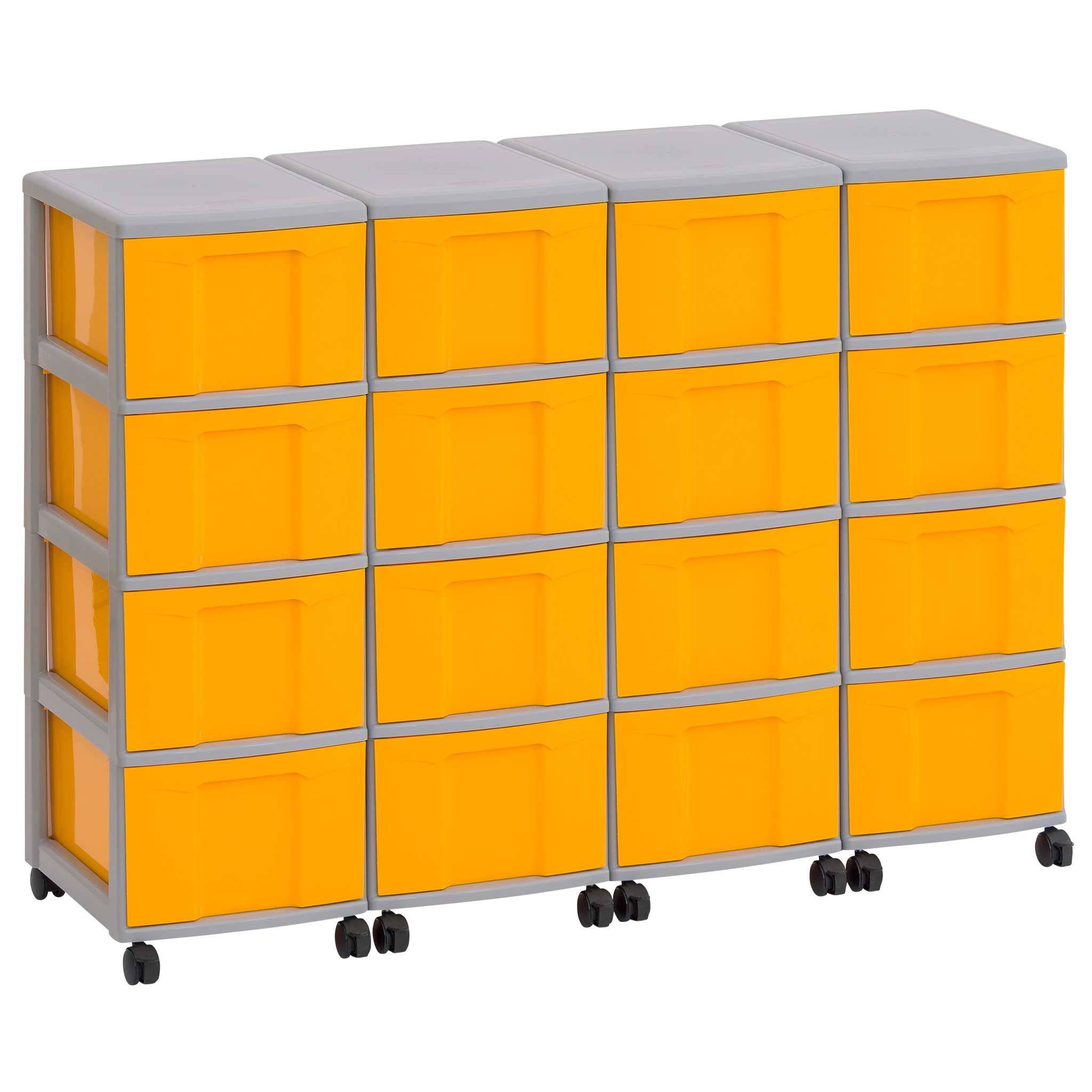 In unseren Flexeo® Boxen findet alles seinen sicheren Platz. Das Rahmensystem wird einfach ineinandergesteckt und hält so sicher zusammen. Kombinieren Sie Boxen auch beliebig zu eigenen Containern. Sie entscheiden selbst, ob Sie Ihren Container lieber freistehend, als Einsatz in einem Schrank oder als Rollcontainer nutzen wollen. Mit jeweils 2 feststellbaren Rollen für einen sicheren Stand.