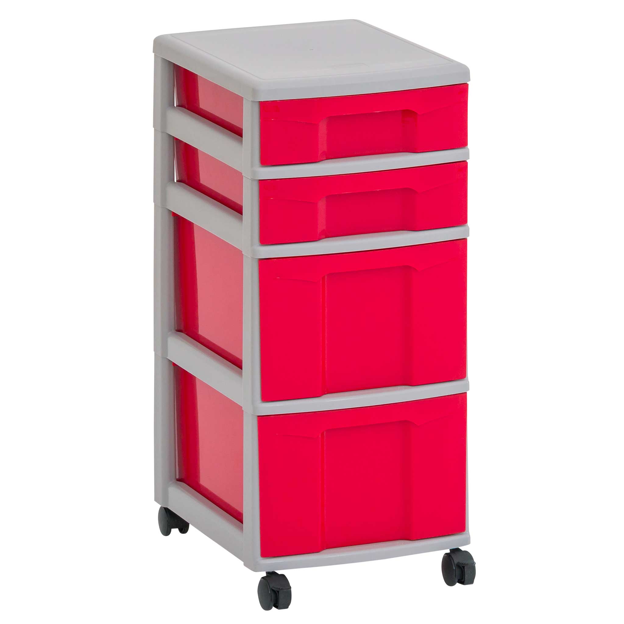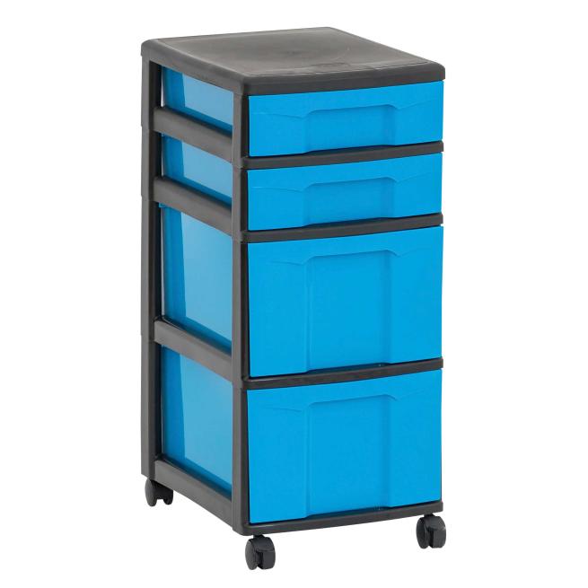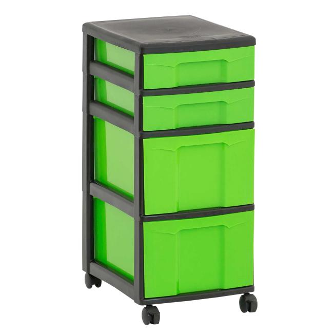 In unseren Flexeo® Boxen findet alles seinen sicheren Platz. Das Rahmensystem wird einfach ineinandergesteckt und hält so sicher zusammen. Kombinieren Sie Boxen auch beliebig zu eigenen Containern. Sie entscheiden selbst, ob Sie Ihren Container lieber freistehend, als Einsatz in einem Schrank oder als Rollcontainer nutzen wollen. Mit jeweils 2 feststellbaren Rollen für einen sicheren Stand.
