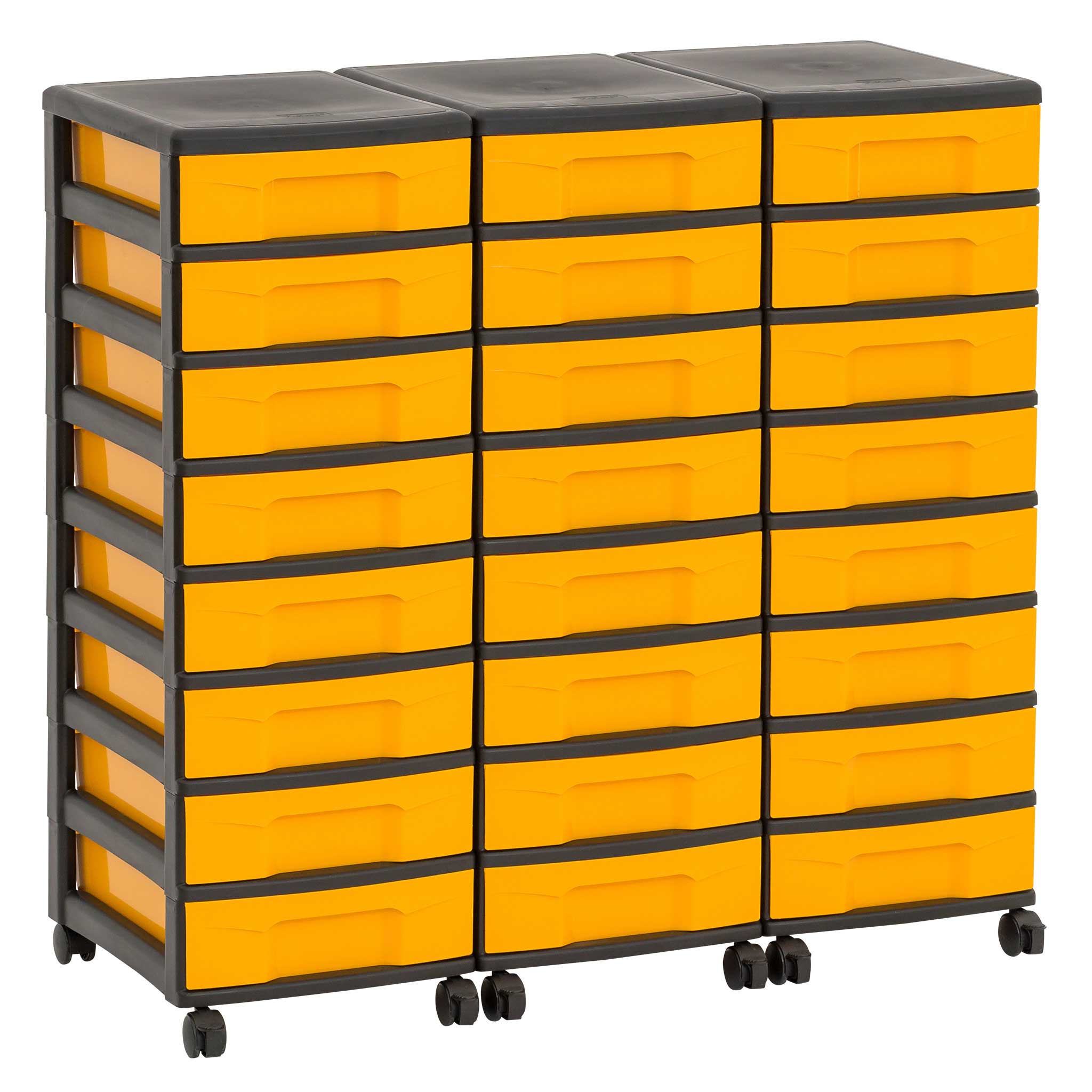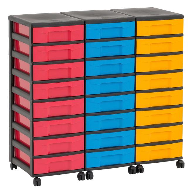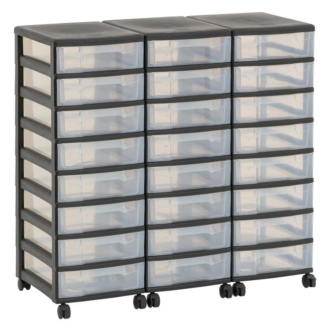 In unseren Flexeo® Boxen findet alles seinen sicheren Platz. Das Rahmensystem wird einfach ineinandergesteckt und hält so sicher zusammen. Kombinieren Sie Boxen auch beliebig zu eigenen Containern. Sie entscheiden selbst, ob Sie Ihren Container lieber freistehend, als Einsatz in einem Schrank oder als Rollcontainer nutzen wollen. Mit jeweils 2 feststellbaren Rollen für einen sicheren Stand.