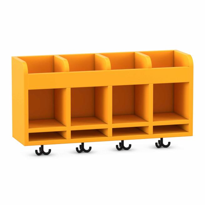 Die Regale sind in 2 Höhen sowie 3 Fachbreiten erhältlich und die Sitzbänke in 4 Breiten sowie 5 Sitzhöhen. So gestalten Sie Garderoben für Kinder im Krippen- bis Grundschulalter. Ihre individuelle Note wählen Sie aus 12 schicken Dekoren.