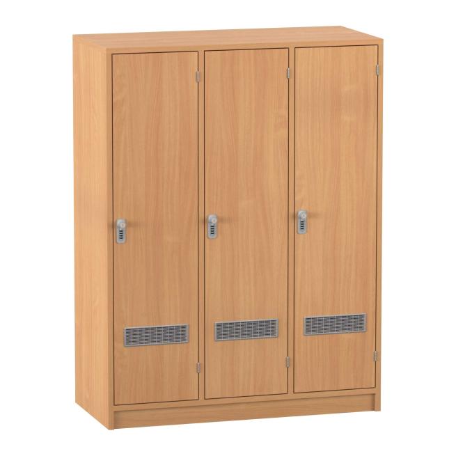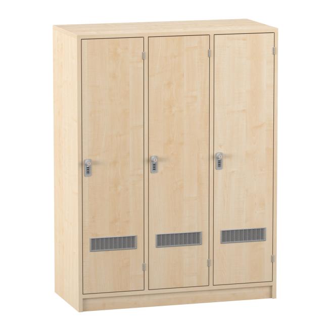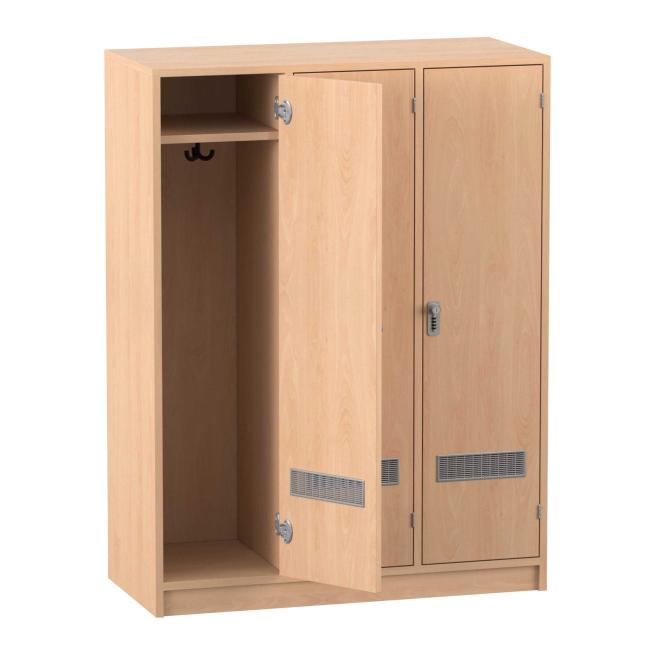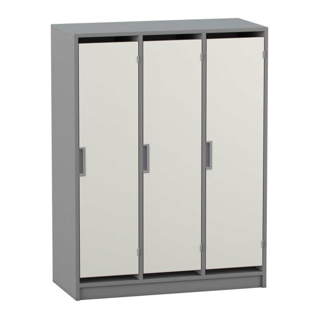 Erweitern Sie Ihre Garderobe Armadio um Schränke in unterschiedlichen Höhen und Breiten sowie um raumnutzende Eckschranklösungen in verschiedenen Höhen. Jedes Schrankfach ist mit einem individuell verstellbaren Fachboden und einem praktischen Dreifach-Garderobenhaken ausgestattet. Wählen Sie den Muschelgriff, wenn Sie mit verkürzten Türen für die Belüftung sorgen möchten. Eine bündige Tür mit Belüftungsgitter erhalten Sie zusammen mit dem Zahlenschloss. Mithilfe der Sockelversteller gleichen Sie Bodenunebenheiten aus.