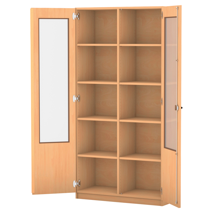 Sichtbare Ordnung. Die Drehtüren dieses robusten Schranks sind zu 2/3 mit Sicherheits-Kunstglas verglast. Die Türen sind zudem mit einer 3-Punkt-Verriegelung ausgestattet. So verstauen Sie Ihre Lehr- und Lernmittel sicher und haben alles im Blick. Material, das nicht auf den ersten Blick sichtbar sein soll, verstauen Sie einfach im unteren Teil des Schranks.