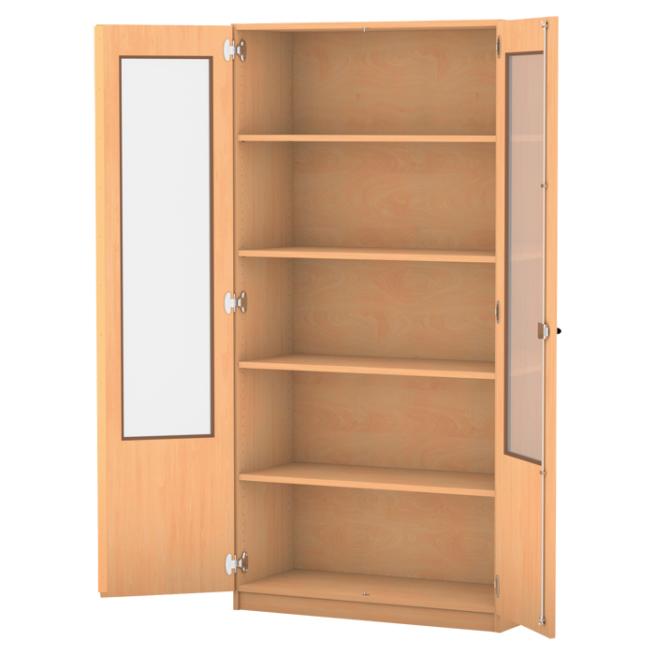 Sichtbare Ordnung. Die Drehtüren dieses robusten Schranks sind zu 2/3 mit Sicherheits-Kunstglas verglast. Die Türen sind zudem mit einer 3-Punkt-Verriegelung ausgestattet. So verstauen Sie Ihre Lehr- und Lernmittel sicher und haben alles im Blick. Material, das nicht auf den ersten Blick sichtbar sein soll, verstauen Sie einfach im unteren Teil des Schranks.