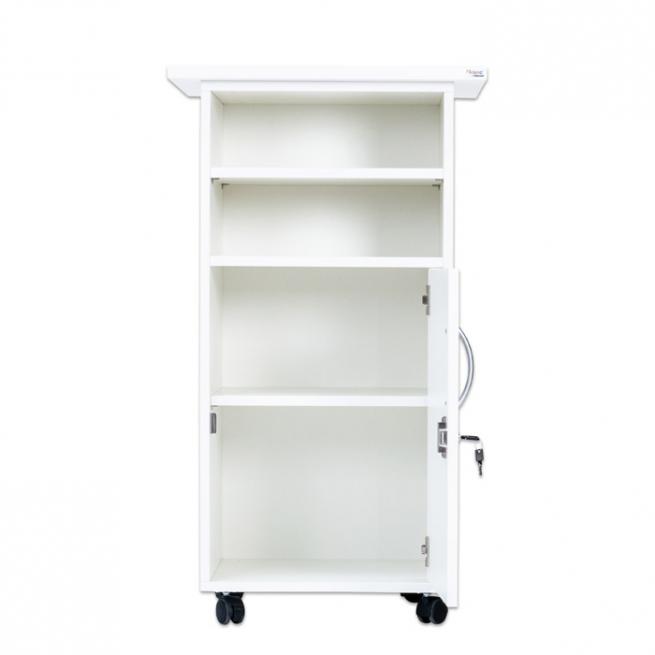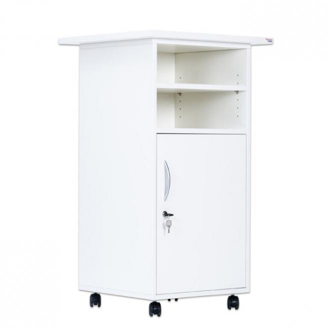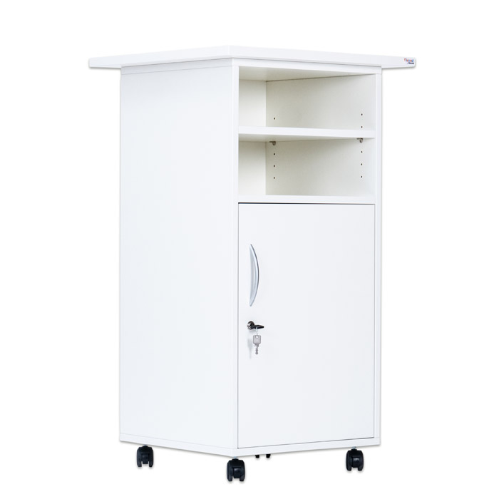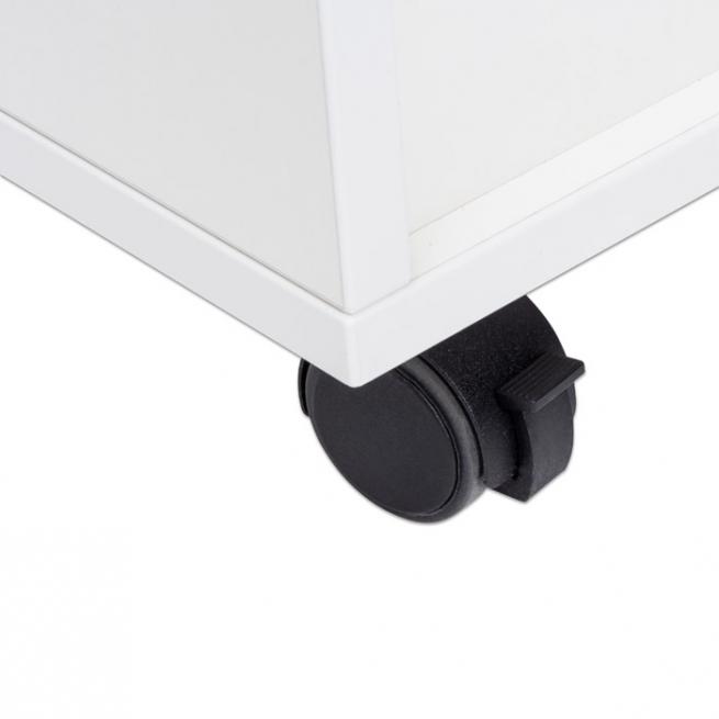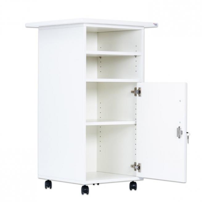 Multifunktionaler Arbeitsplatz mit viel Stauraum, abschließbarer Tür und 2 verstellbaren Fachböden. Für den festen Stand sind die 4 Rollen feststellbar. Nutzen Sie den Caddy z. B. als Rednerpult, Medienwagen, Aufbewahrungsschrank oder kleinen Schreibtisch zur Rückenentlastung im Stehen. Die Lieferung erfolgt voll montiert.