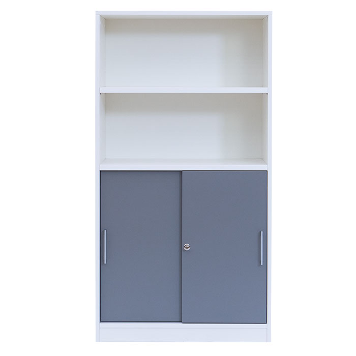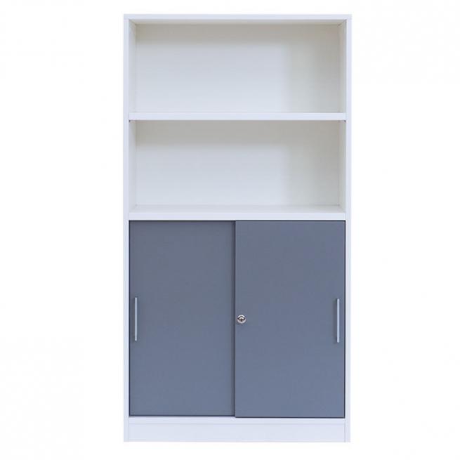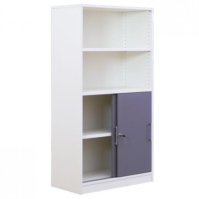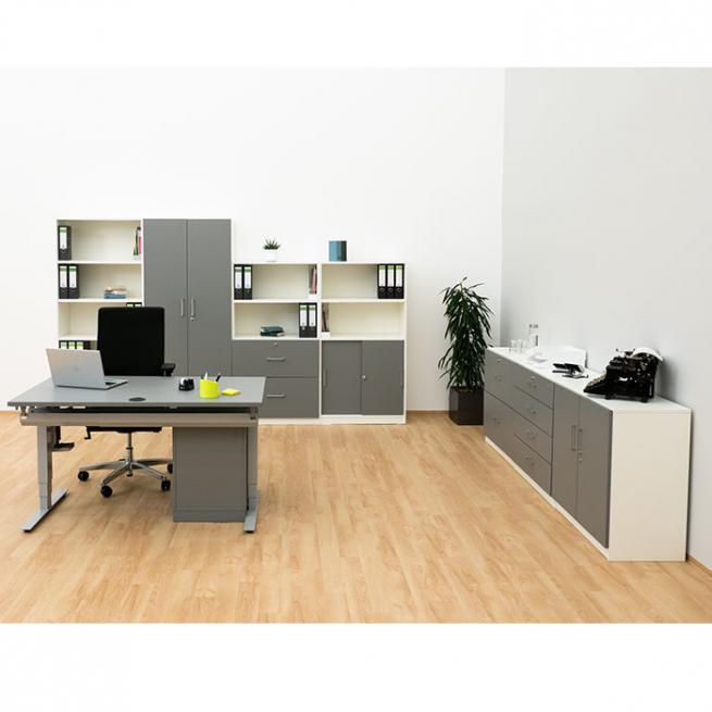 FLEXEO® Office – Schiebetüren-Schrank mit 2 offenen Fächern H: 150,5 cm