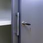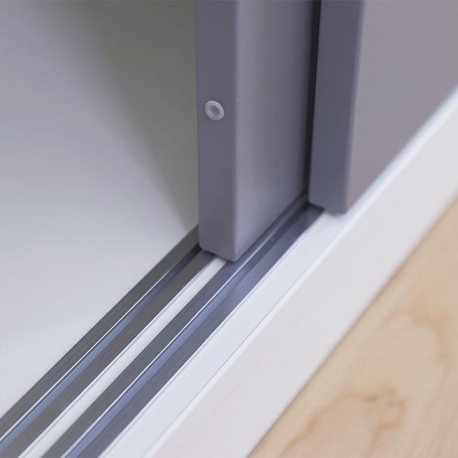 Genau wie die Schrankvariante mit Rollläden öffnet sich der FLEXEO® Schiebetüren-Schrank, ohne zusätzlichen Raum zu benötigen. Damit ist er ein ideales Helferlein, um Raumbereiche abzutrennen und individuell nutzbar zu machen – und bietet natürlich auch eine Menge Platz für Ihre Materialien.