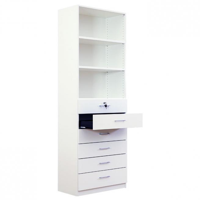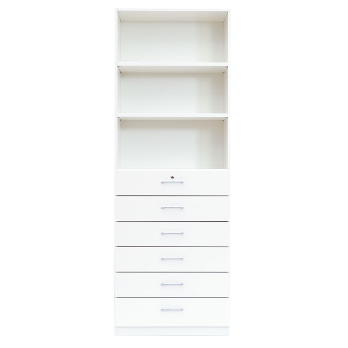 Schubladen-Schrank mit 3 offenen Fächern und 6 flachen Schubladen