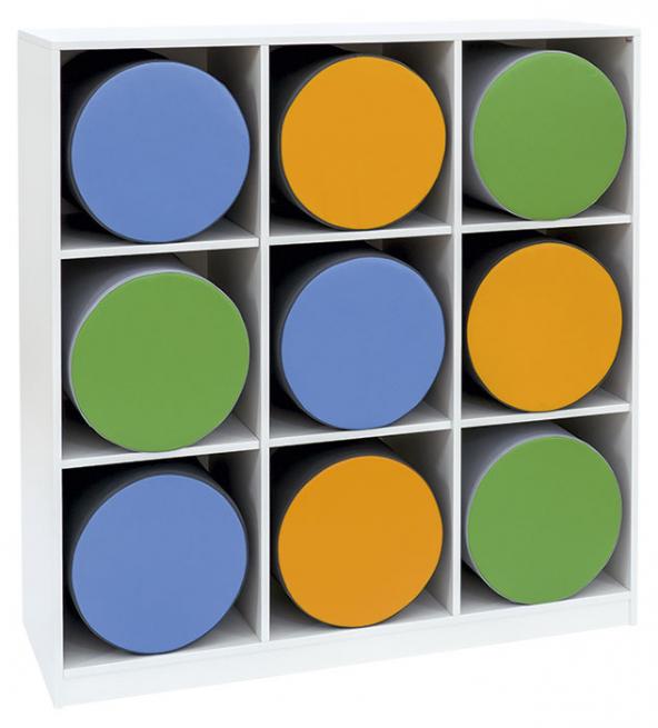 Eckige Ordnungslösung für runde Hocker. Sitzgelegenheiten brauchen Sie nicht dauerhaft und möchten sie einfach nach Bedarf schaffen, weil Sie den Raum auch anderweitig nutzen? Die verschiedenen Variationen der Flexeo® Polsterhockerregale und -schränke sind da die perfekte Lösung. Im offenen Regal werden die Hocker zum echten Hingucker, wenn die farblich unterschiedlichen Sitzpolster in den Raum zeigen. Hinter abschließbaren Flügeltüren sind die Hocker vor nicht gewünschtem Zugriff geschützt.