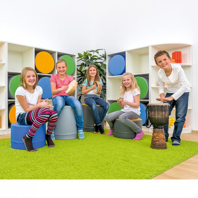 Eckige Ordnungslösung für runde Hocker. Sitzgelegenheiten brauchen Sie nicht dauerhaft und möchten sie einfach nach Bedarf schaffen, weil Sie den Raum auch anderweitig nutzen? Die verschiedenen Variationen der Flexeo® Polsterhockerregale und -schränke sind da die perfekte Lösung. Im offenen Regal werden die Hocker zum echten Hingucker, wenn die farblich unterschiedlichen Sitzpolster in den Raum zeigen. Hinter abschließbaren Flügeltüren sind die Hocker vor nicht gewünschtem Zugriff geschützt.