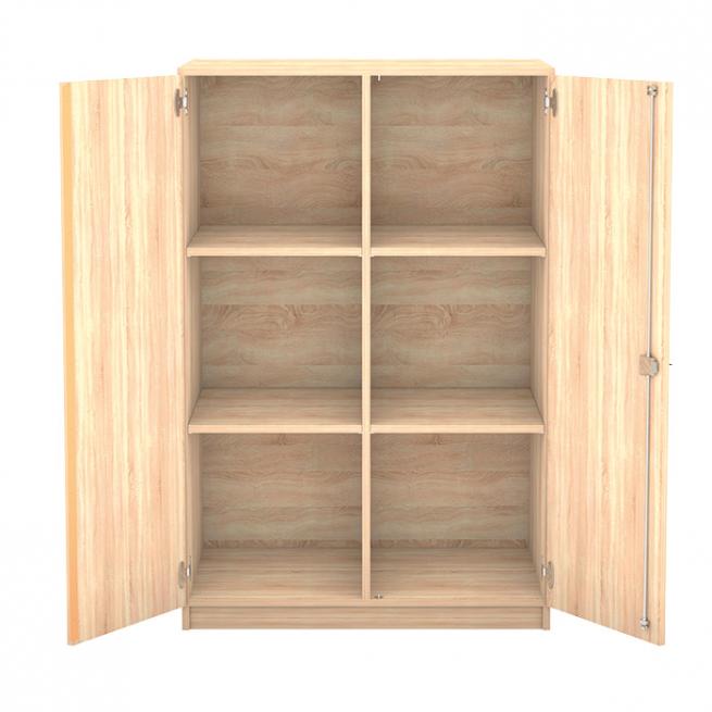 Mit 2 Drehtüren, 6 Fächer, mit Mittelwand, 4 Fachböden (nicht verstellbar)