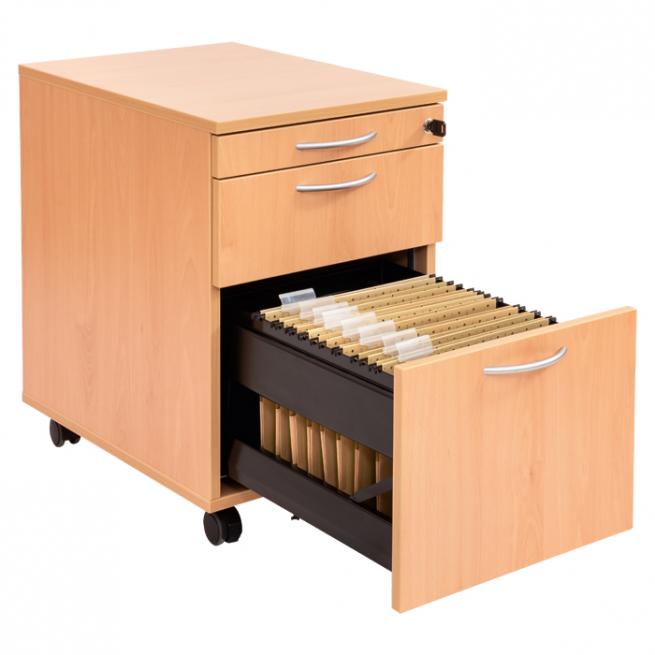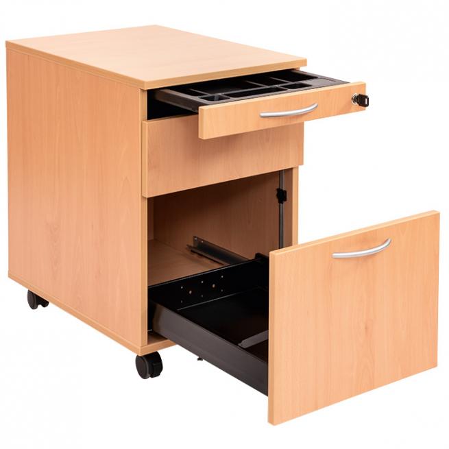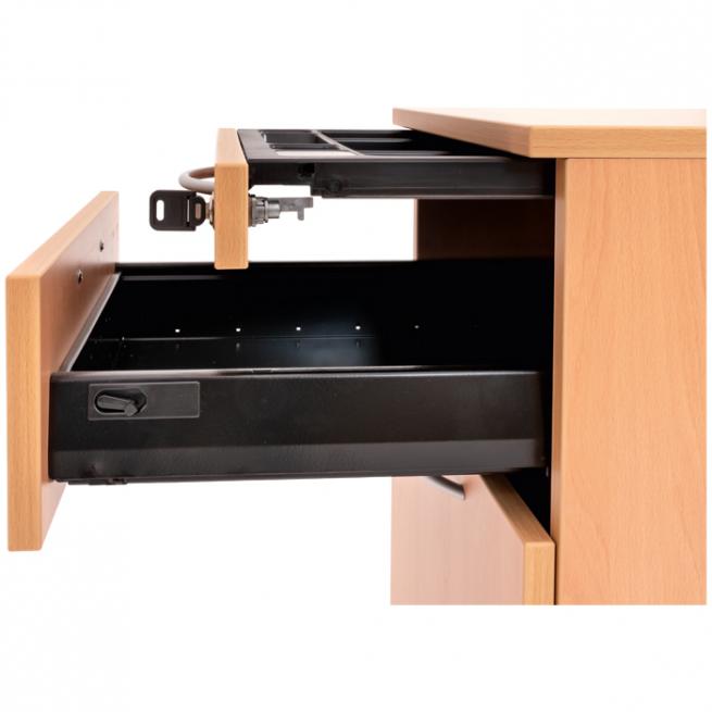 Mit Schubladeneinsatz für Kleinteile und Möglichkeit zum Nachrüsten eines Hängeregisters (Art.-Nr. 55637) für die untere Schublade. Abschließbar.