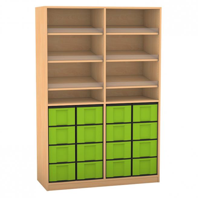 Flexeo® Schrägablagenregale, 190 x 126,4 cm mit 16 hohen Boxen