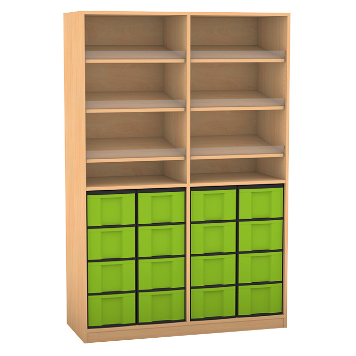 Schräg – Ordnung mit Ausblick. Aktuelle Informationen, Broschüren, Bücher, Prospekte, Zeitschriften … präsentieren Sie anschaulich auf den Schrägablagen mit Plexiglasaufkantung. Sie erhalten das Regal in zwei unterschiedlichen Breiten und wahlweise mit 5 oder 10 Schrägablagen oder mit 3 oder 6 Schrägablagen, wobei die untere Regalhälfte dann mit flachen oder hohen Boxen ausgestattet ist.