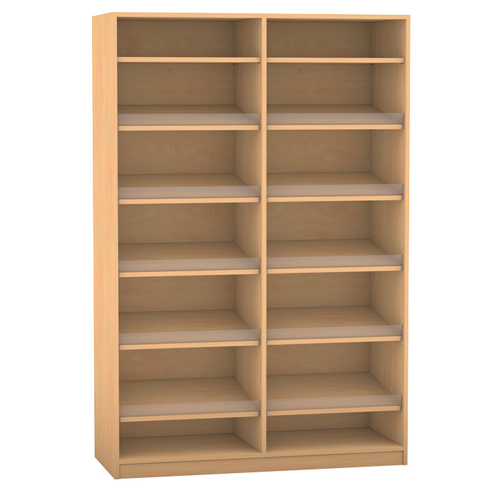 Das Regal ist besonders robust dank hochwertiger Melaminharzbeschichtung und äußerst stabil durch die 19 mm starke Rückwand sowie seine Böden und den Korpus.