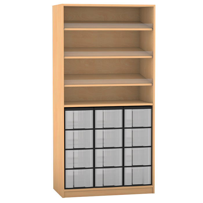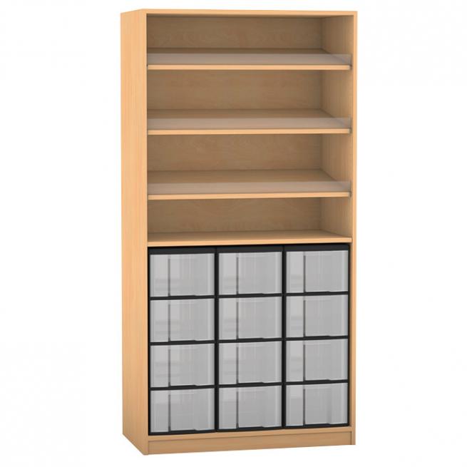 Flexeo® Schrägablagenregale, 190 x 94,4 cm mit 12 hohen Boxen