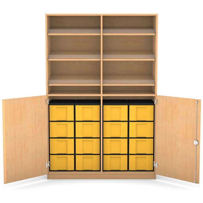 Flexeo® Schrank mit Schrägablagen und Mittelwand, 190 x 126,4 cm mit 16 hohen Boxen