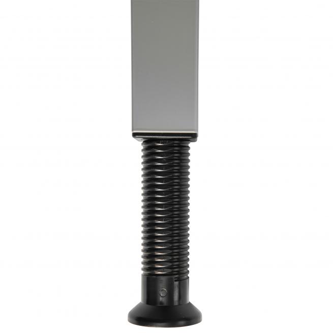 An dem durchdachten Schreibtisch der Flexeo®-Office-Serie arbeiten Sie effizient. Die große melaminharzbeschichtete Arbeitsfläche ist besonders langlebig, abrieb-, stoß- und kratzfest. Dank Kabeldurchlassdosen verschwinden Kabel einfach unter dem Tisch. Bodenunebenheiten gleichen Sie aus, indem Sie Kunststoffenden an den Metallfüßen drehen. So justieren Sie sogar die Tischhöhe ein wenig, denn die Fußenden sind um bis zu 12 cm hinausdrehbar. Zum Reinigen der unempfindlichen Schreibtischplatte nutzen Sie ein feuchtes Baumwoll- bzw. Mikrofasertuch. Schränke für mehr Stauraum bietet Ihnen die Flexeo®-Office-Reihe.
