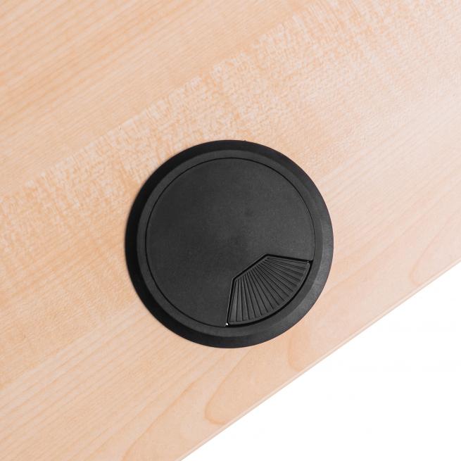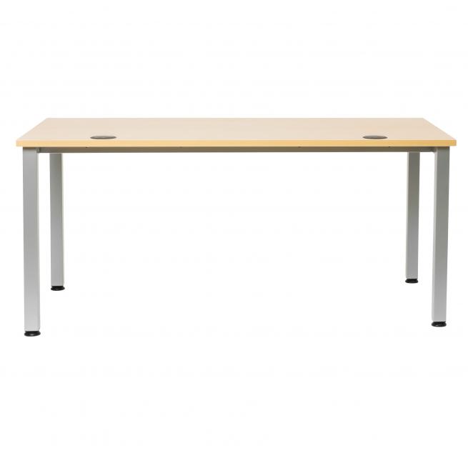 An dem durchdachten Schreibtisch der Flexeo®-Office-Serie arbeiten Sie effizient. Die große melaminharzbeschichtete Arbeitsfläche ist besonders langlebig, abrieb-, stoß- und kratzfest. Dank Kabeldurchlassdosen verschwinden Kabel einfach unter dem Tisch. Bodenunebenheiten gleichen Sie aus, indem Sie Kunststoffenden an den Metallfüßen drehen. So justieren Sie sogar die Tischhöhe ein wenig, denn die Fußenden sind um bis zu 12 cm hinausdrehbar. Zum Reinigen der unempfindlichen Schreibtischplatte nutzen Sie ein feuchtes Baumwoll- bzw. Mikrofasertuch. Schränke für mehr Stauraum bietet Ihnen die Flexeo®-Office-Reihe.