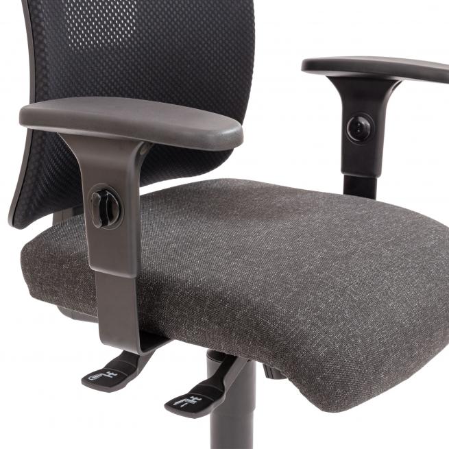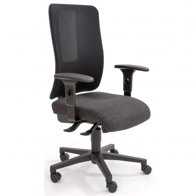 Auf dem modernen Drehstuhl mit ergonomischem Flachsitz und abgerundeter Sitzvorderkante sitzen Sie auch über einen längeren Zeitraum sehr bequem. Dank stufenloser Höhenverstellung passen Sie die Sitzhöhe einfach Ihrer Körpergröße an. Die Rückenlehne verstellen Sie in Höhe und Neigung ebenfalls im Handumdrehen. Erhältlich mit atmungsaktiver Netzbespannung oder kaschiertem Polster. Wahlweise mit oder ohne Armlehnen sowie Hartboden- oder Teppichrollen.