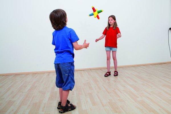 Dieses Spielgerät macht Riesenspaß und ist vielseitig einsetzbar. In Spielvarianten werden auch das Gedächtnis, das Rechnen und das Sozialverhalten gefördert. Die Strahlen des Flugsterns sind bedruckt mit den Ziffern von 0 bis 4 (2x 0, 1, 2, 3, 4). Der Ball wird mit einer Hand gefangen. Die Kinder addieren oder subtrahieren die Punkte entsprechend der Ziffern. Bei Lieferung nicht aufgepumpt.