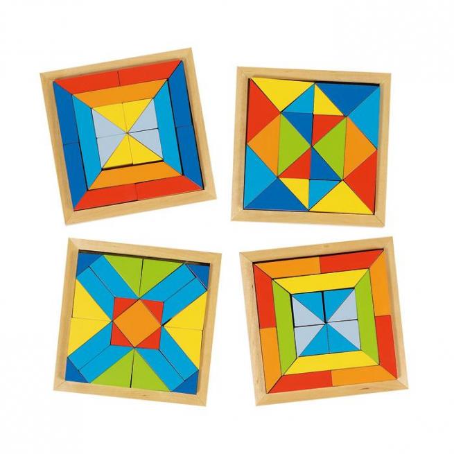 Die farbenfrohen Legesteine regen die Kinder zu immer neuen Gestaltungen an. Im Spiel bekommen die Kleinen Verständnis für geometrische Formen und Symmetrie. Das Set enthält: 4 verschiedene Legespielemit insgesamt 85 Legesteinen.