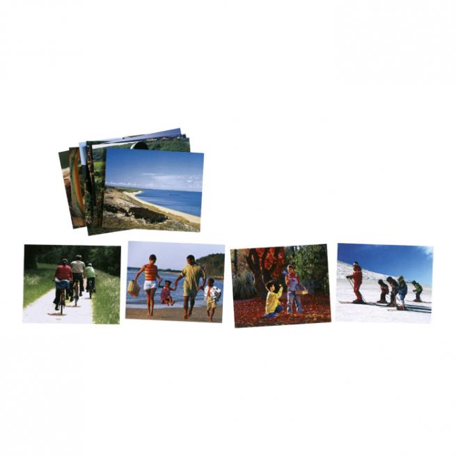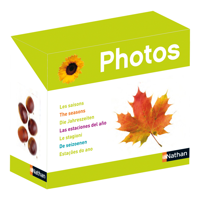 Die Box enthält 6 Bilderserien zum Thema „Die Jahreszeiten“: Kleidung, Pflanzen und Früchte, Tiere, Landschaften, handwerkliche Tätigkeiten und Freizeit.