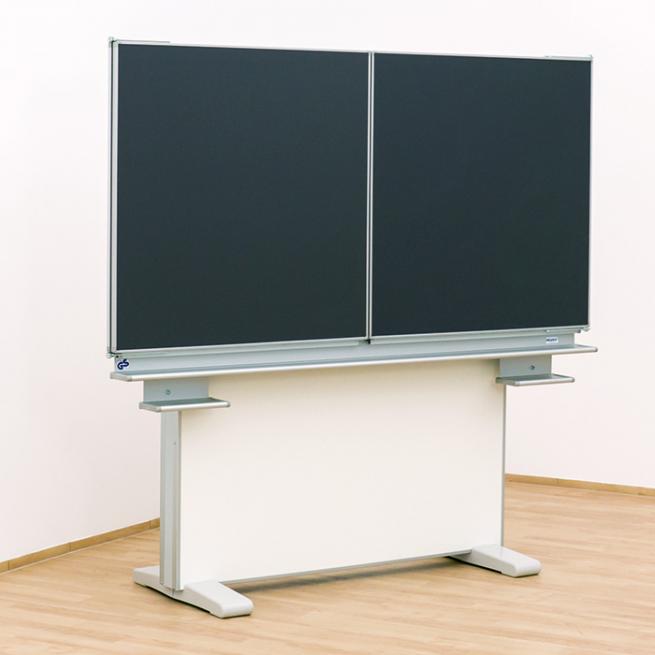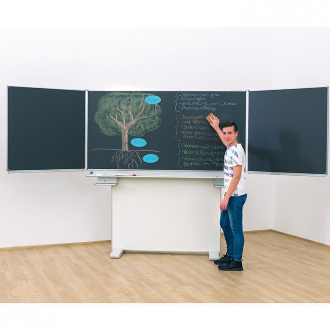 Supersicher und standfest. Höhenverstellung durch Gegengewicht. Die Tafel steht frei im Raum. Besonders zu empfehlen bei nicht tragenden Wänden.