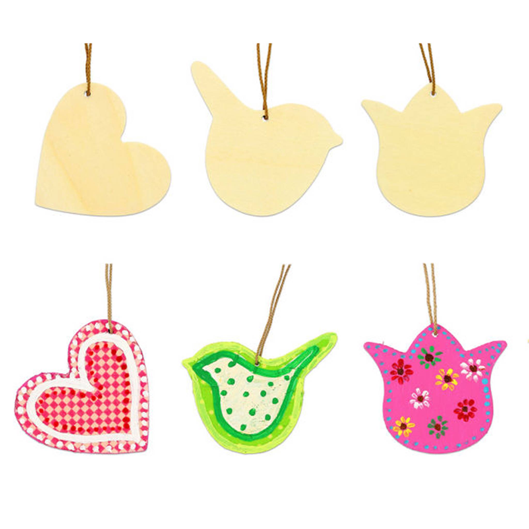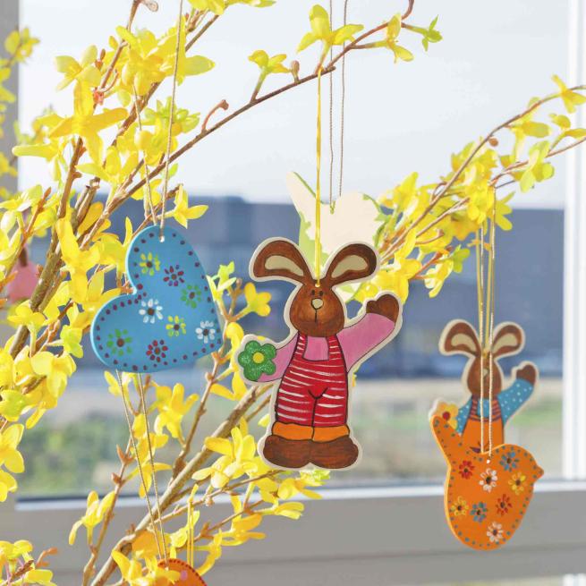 Ein schöner Blickfang für jeden Frühlings- und Osterstrauch. Mit Aufhängeschlaufe. Das Set besteht aus je 4 Herzen, Blumen und Vögeln.